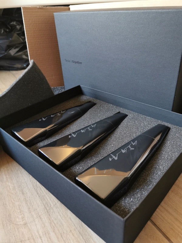 Tesla GigaBier is designed to emulate the form of Cybertruck while honoring the 500-year tradition of German Reinheitsgebot beermaking. Enjoy this limited edition pilsner-style beer brewed in Berlin with our exclusive strain of Cyberhops and notes of citrus, bergamot and sweet fruit. Each bottle features a seamless gloss black sleeve with a glow-in-the-dark Giga watermark. Prost!